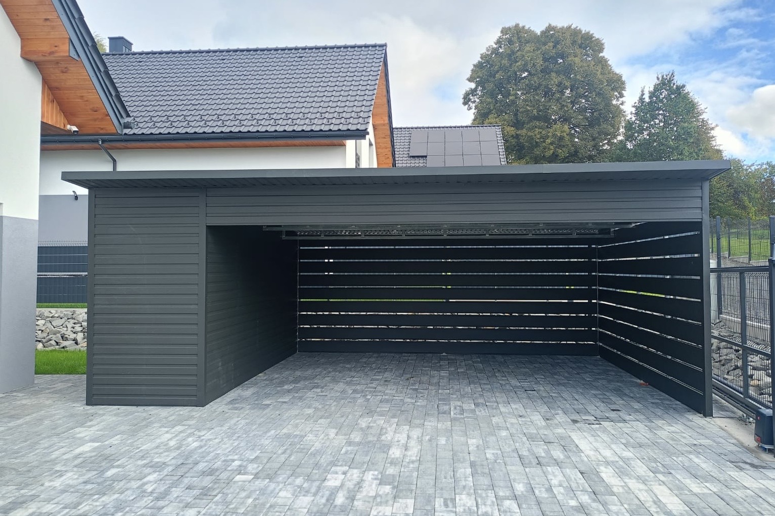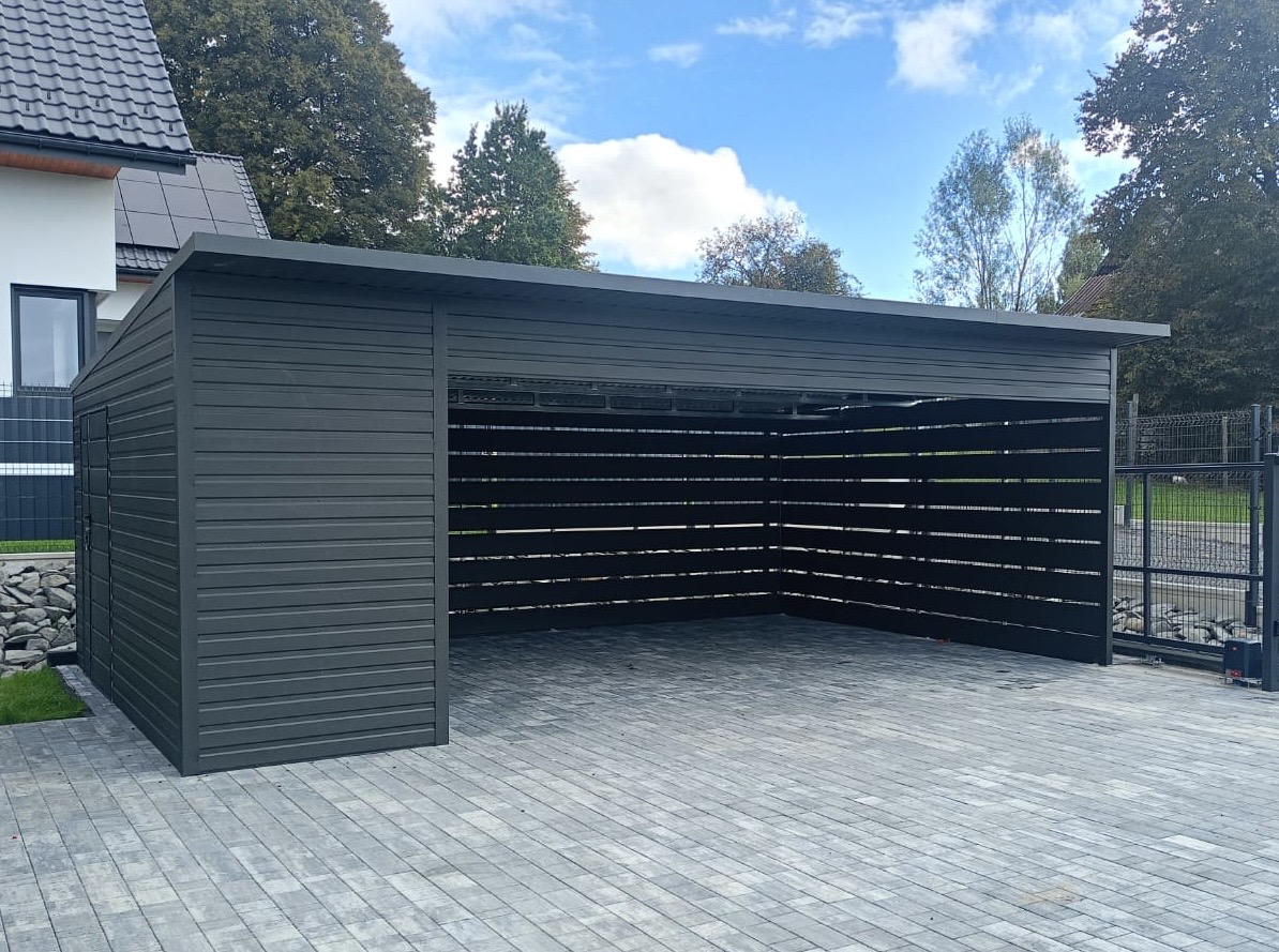 CARPORT 7m x 5m z ukrytym schowkiem – antracyt / grafit. BL05