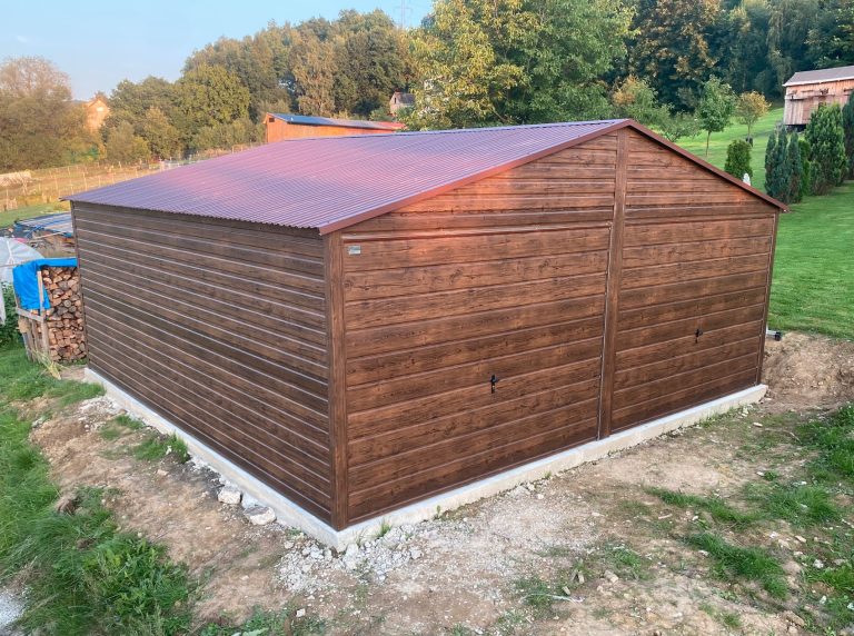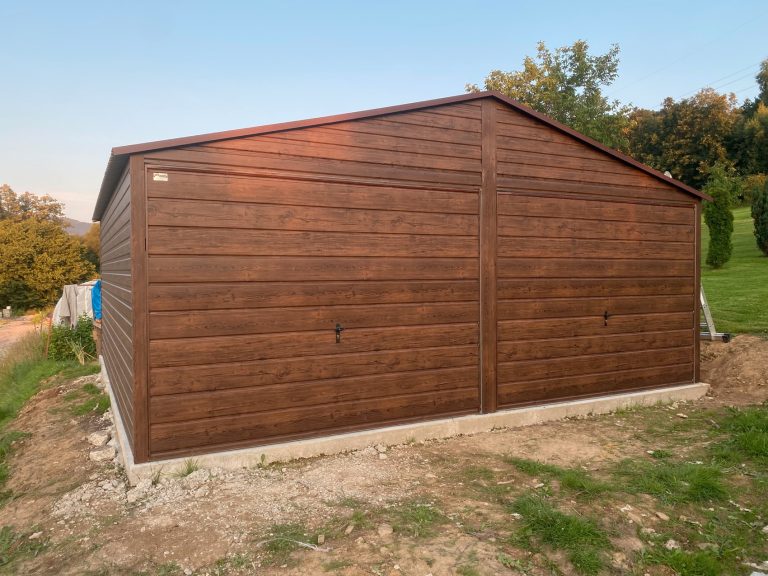 GARAŻ BLASZANY 6m x 6m drewnopodobny / orzech. BL08